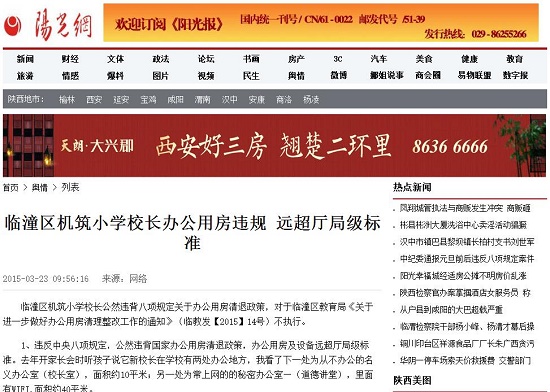 臨潼區(qū)機筑小學校長公然違背八項規(guī)定關(guān)于辦公用房清退政策,對于臨潼區(qū)教育局《關(guān)于進一步做好辦公用房清理整改工作的通知》(臨教發(fā)【2015】14號)不執(zhí)行。
