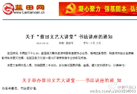 據(jù)新浪微博爆料:【質(zhì)疑】有請藍田文聯(lián)、藍田網(wǎng)解釋解釋,什么是“新聞出版委員?”“駐會主席和副主席有區(qū)別嗎?”是否夸大宣傳呢?求解 http://www.lantianxian.cn/readnews.php?id=8674