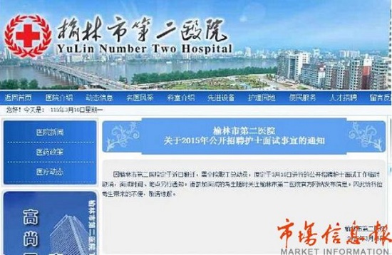 圖為榆林第二醫(yī)院官方網(wǎng)站中的截圖