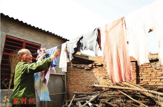 姚富國(guó)收拾晾曬的尿布。