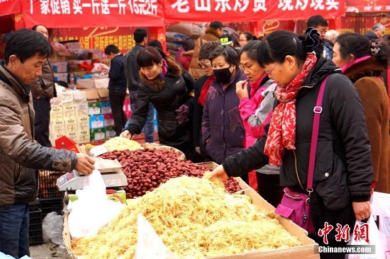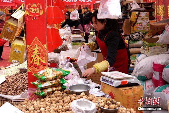 2月5日,隨著春節(jié)的臨近,西安的年貨市場也開始“紅火”起來,前來采購新年喜慶飾品、酒水飲料和食品的市民絡(luò)繹不絕。