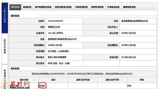 記者在工商系統(tǒng)查詢得知,勉縣板凳堰水電有限責任公司成立于2000年11月23日,注冊資本金為166萬元,公司股東包括張會安在內(nèi)共32人。