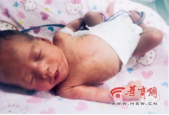 2014年12月10日晚,趙建華的妻子袁莎莎在陜西省人民醫(yī)院的產房內產下了4個女嬰。由于是早產兒,4個女嬰屬極低體重兒,最重僅有1450克,最小的只有1020克。女兒出生后,經(jīng)過醫(yī)務人員35天的全力搶救治療,方才脫離生命危險。趙建華只見過女兒們一面,用手機拍了張照片后,4個女兒就被送進產房保溫室。