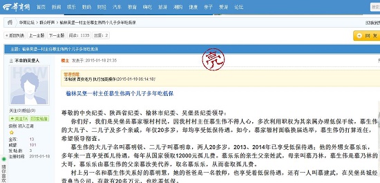 尊敬的中央紀委、陜西省紀委、榆林市紀委、吳堡縣紀委領導: