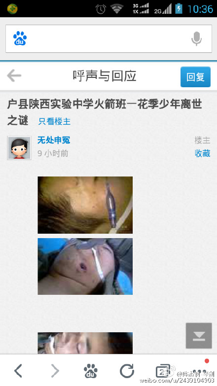 據(jù)新浪微博爆料:【求證】#陜西實驗中學火箭班一花季少年離世之謎#2015年1月7日下午約17點33分戶縣實驗中學高二一班王某某家長接學校電話通知,孩子在學校摔倒不省人事。家長趕到醫(yī)院,孩子已沒有心跳呼吸,家長在孩子頭部發(fā)現(xiàn)有傷。http://t.cn/RZSdRJb @陜西省教育廳