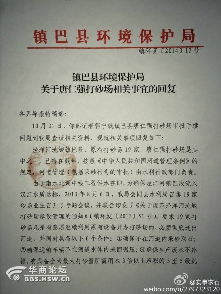 #環(huán)評(píng)成廢紙污染還繼續(xù)#鎮(zhèn)巴縣環(huán)保局在沒(méi)有任何前置條件下能為個(gè)人辦環(huán)評(píng)、允許其個(gè)人在河道非法采沙數(shù)年、鎮(zhèn)巴縣水利局幾翻處罰難關(guān)停。記者前往采訪現(xiàn)場(chǎng)機(jī)器轟鳴、河道嚴(yán)重變形。前往鎮(zhèn)巴水利局采所有工作人員表示無(wú)奈:我們多次處罰過(guò)還是治理不了、原因是人家有環(huán)評(píng)。一江清水送北京。