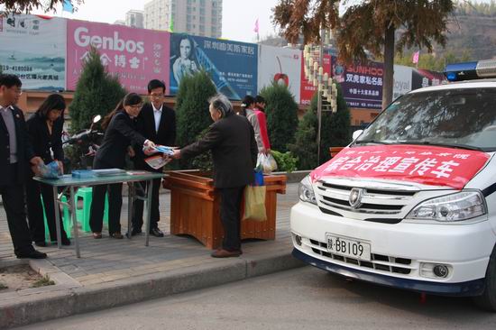 活動當(dāng)天適逢新橋集會,印臺區(qū)檢察院出動了一臺貼有平安印臺宣傳標(biāo)語的宣傳車在街道繁華地段進(jìn)行廣播,同時(shí)還擺攤設(shè)點(diǎn)集中開展推進(jìn)平安建設(shè)、提升“兩率一度”法制宣傳活動?,F(xiàn)場發(fā)放人民檢察院相關(guān)職能手冊、保護(hù)未成年人宣傳手冊以及公檢法司聯(lián)合制作的印有平安建設(shè)宣傳字樣的掛歷等資料,面對面解答群眾咨詢的法律問題。共發(fā)放各類宣傳資料200份(個),解答群眾咨詢10人次,深受群眾歡迎,反響良好。