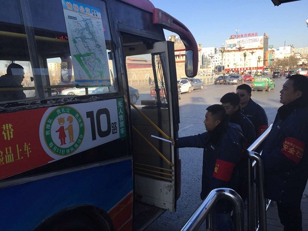 1月12日,榆林市公交公司特抽調(diào)60余名工作人員,由公司總經(jīng)理付明榮、書記謝治軍等領(lǐng)導(dǎo)班子親自帶隊,在客流量集中的站點疏導(dǎo)交通和安全檢查,嚴防“三品”及其他危險品上車,保障乘客生命財產(chǎn)安全。