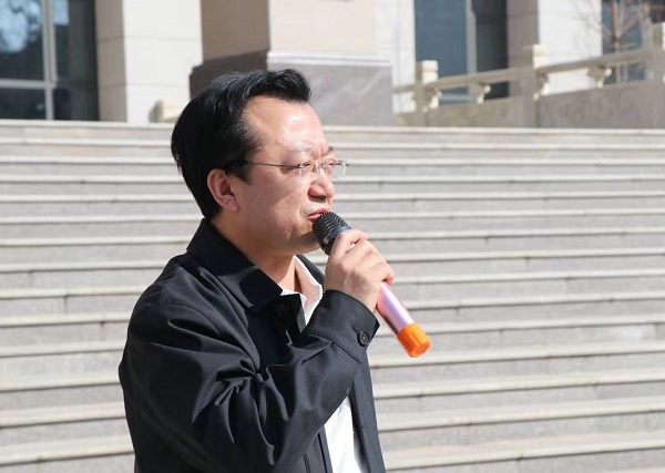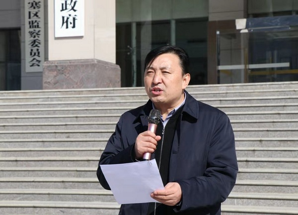 區(qū)疫情聯(lián)防聯(lián)控領(lǐng)導(dǎo)小組組長任高飛在儀式上強(qiáng)調(diào)