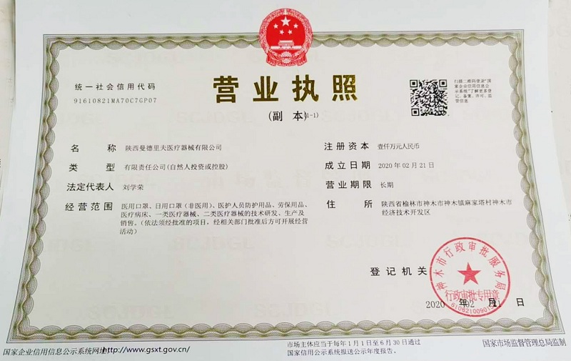 2月21日,神木市市場監(jiān)督管理局通過全程“網(wǎng)上辦”的方式,為神木首個防疫物資生產(chǎn)企業(yè)陜西曼德里夫醫(yī)療器械有限公司辦理了營業(yè)執(zhí)照。工作人員將打印出的營業(yè)執(zhí)照遞交到該公司負(fù)責(zé)人劉學(xué)榮的手上,劉學(xué)榮激動地說:“辦理手續(xù)全程不到2小時就順利領(lǐng)到了營業(yè)執(zhí)照,為企業(yè)早日順利投產(chǎn)提供了極大便利,我們公司將按照相關(guān)生產(chǎn)要求,加快廠房裝修等工期進(jìn)度,力爭早日實(shí)現(xiàn)投產(chǎn),服務(wù)當(dāng)?shù)丶爸苓吶罕?,為疫情防控貢獻(xiàn)企業(yè)自己的力量?!?/p>