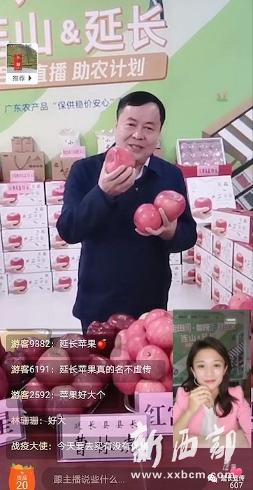 “各位網(wǎng)友大家好,我們延長縣是革命老區(qū)縣、全省精準(zhǔn)扶貧首批脫貧退出縣,有‘石油故里、瓜果之鄉(xiāng)’的美譽,今天給網(wǎng)友們主推我縣出品的延長蘋果?!敝辈ブ?,延長縣長曹林虎向網(wǎng)友細(xì)致展示了不同規(guī)格的延長蘋果,個大飽滿、紅潤鮮亮的蘋果令網(wǎng)友們眼前一亮,不斷刷屏點贊。