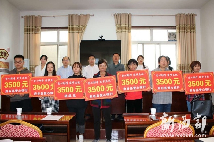 近日,府谷縣富昌路便民服務中心愛心銀行舉辦“愛心助學 筑夢起航”助學金發(fā)放儀式,轄區(qū)7名貧困大學生領取了資助金。