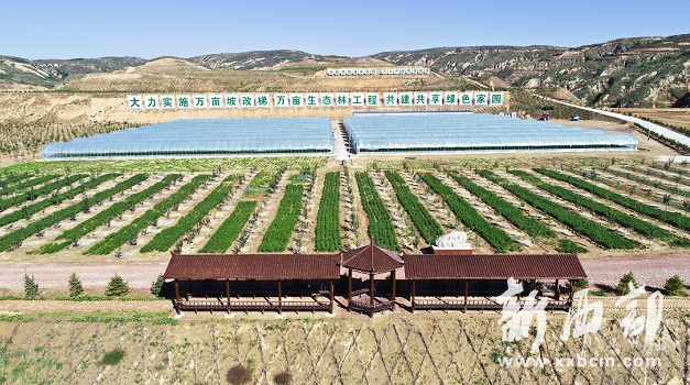 白墻紅瓦的新農(nóng)村,黃土綠樹相間,梯田沿山勢層疊而上,蔬菜大棚中綠意盎然,眼前是一派新農(nóng)村田園風(fēng)貌。很難想象,這里曾經(jīng)是采煤塌陷區(qū)。