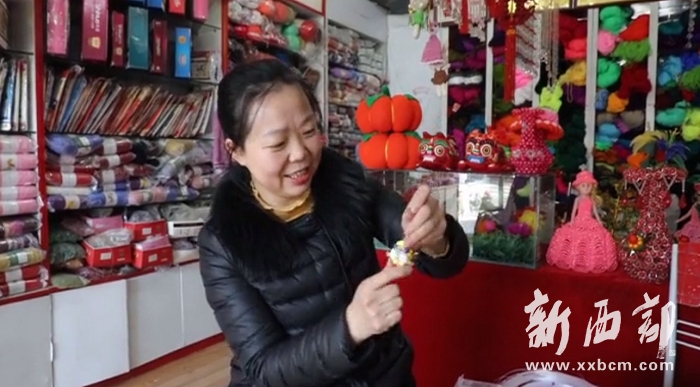 在榆林老街的一個手工編織工藝品店內(nèi),擺放了各種各樣的手工工藝品,有毛線材質(zhì)的大南瓜、坐墊、提包,有串珠編織的筆筒、首飾盒等等。幾顆珠子,一根魚線,在她手里一會兒就能變成一件精美的工藝品,這便是王愛蘋堅守了二十多年的事業(yè)。