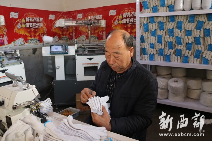 如今,賀喜平的“家庭工廠”年產(chǎn)4萬(wàn)余雙手套,產(chǎn)量供不應(yīng)求,收入可觀。脫貧后的他,又力所能及地幫助鄰里和其他有需要的人,還經(jīng)常為村民送手套。今年10月份,他又為環(huán)衛(wèi)工人捐贈(zèng)了1000雙手套。