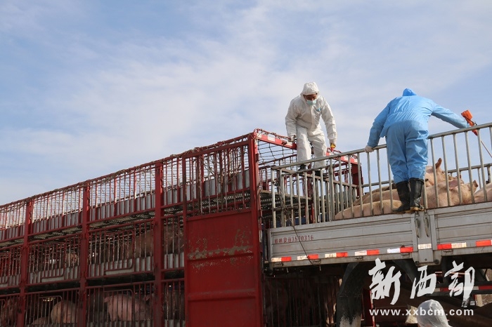 1月25日,魚河峁鎮(zhèn)柏蓋梁村的鎮(zhèn)級(jí)聯(lián)社養(yǎng)豬廠里一片忙碌。寄托著村民致富希望的1000頭生豬全部出欄。