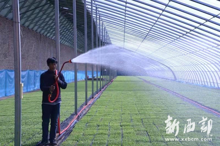 在東勝村經(jīng)濟(jì)聯(lián)合社的一座育苗溫棚里,十余名工人正有條不紊地拌肥、抹盤、點盤、擺盤,120余萬株青翠欲滴、長勢喜人的辣椒苗整裝待發(fā)。為減少人工成本、實現(xiàn)經(jīng)濟(jì)效益最大化,東勝村經(jīng)濟(jì)聯(lián)合社溫棚實行錯峰種苗培育?!耙慌锢苯访鐚⒂?0天后出棚,專門供應(yīng)設(shè)施拱棚,另外一棚辣椒苗預(yù)計5月初出棚,供應(yīng)大田種植,每棚收入大概在17萬元左右?!睎|勝村經(jīng)濟(jì)聯(lián)合社負(fù)責(zé)人柳岱岳告訴記者。