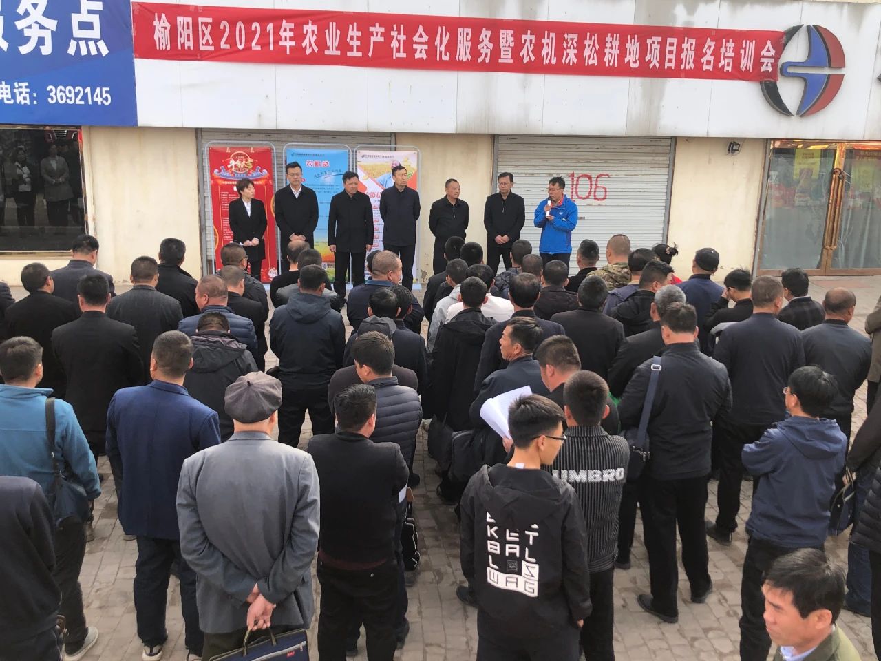 為加快推進(jìn)新型農(nóng)業(yè)生產(chǎn)社會(huì)化服務(wù)體系建設(shè),提升農(nóng)業(yè)生產(chǎn)社會(huì)化服務(wù)水平、拓寬服務(wù)領(lǐng)域,探索農(nóng)業(yè)生產(chǎn)社會(huì)化服務(wù)新舉措。3月25日,榆陽(yáng)區(qū)2021年農(nóng)業(yè)生產(chǎn)社會(huì)化服務(wù)暨農(nóng)機(jī)深松整地合作社報(bào)名培訓(xùn)會(huì)在和豐機(jī)電城召開(kāi),區(qū)農(nóng)機(jī)中心相關(guān)工作人員、各農(nóng)機(jī)專(zhuān)業(yè)合作社、農(nóng)機(jī)經(jīng)銷(xiāo)商等90余人參加培訓(xùn)。