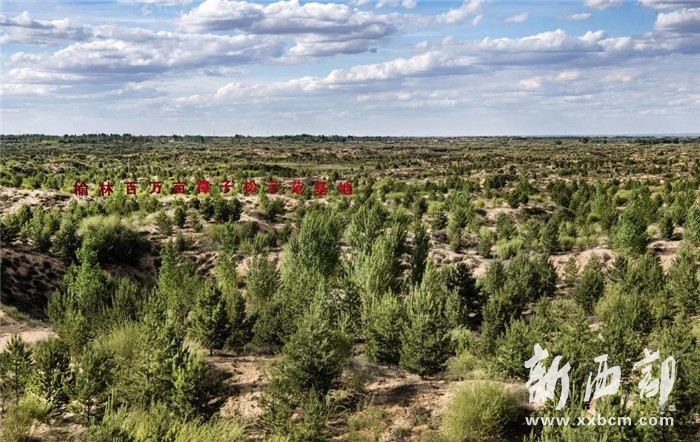 1958年,八一電影制片廠拍攝《沙漠追匪記》時(shí),要在全國(guó)各地尋找一片沒有“雜草”的沙漠,最終將外景定在了榆林城東北的七里沙,據(jù)文獻(xiàn)記載:“當(dāng)時(shí)榆陽區(qū)林木覆蓋率僅僅1.8%,往往行走幾公里才能見到一顆臭柏。但如今,這里已經(jīng)被榆陽區(qū)牛家梁林場(chǎng)數(shù)十萬畝的林木所覆蓋,從我所在的觀望臺(tái)極目遠(yuǎn)眺,四周到處是蒼翠挺拔的松柏,而這一片片郁郁蔥蔥的綠色,也已成為榆陽大地的主色調(diào)。