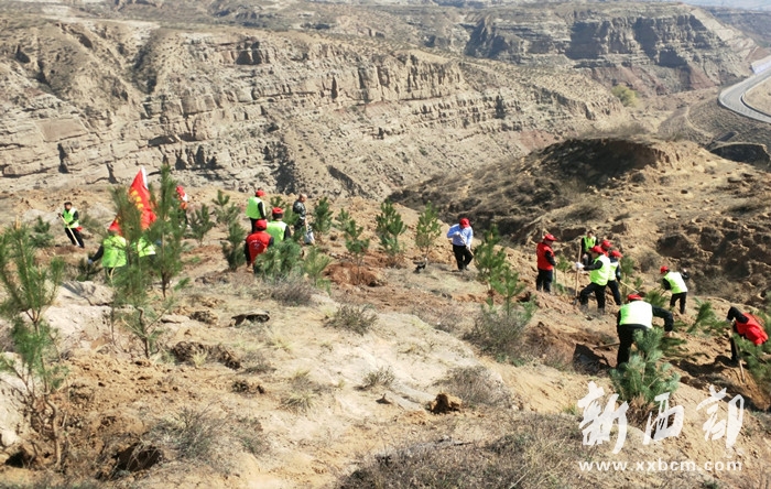 植樹采取團(tuán)結(jié)協(xié)作、分組競賽的方式進(jìn)行。人員分為挖坑、栽苗、澆水三個梯隊和坡上、坡下兩個小組,大家通力合作、有序進(jìn)行,拼干勁、比進(jìn)度、講質(zhì)量,在忙碌的身影和勞動的歡聲笑語中,共植松樹幼苗百余株。