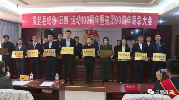 會上,全體參會人員奏唱了《國歌》、《五月的花?!?,表彰了“吳起好青年”、“吳起縣十佳青年衛(wèi)士”、“優(yōu)秀共青團(tuán)干部”、“五四紅旗團(tuán)支部”等先進(jìn)集體和個人,獲獎代表作了演講。