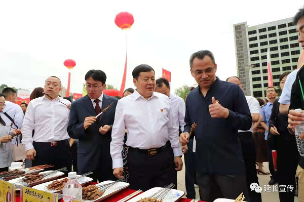欣賞過(guò)精彩的文藝演出,曹林虎帶著主播一起品嘗地道的延長(zhǎng)美食和鮮美的有機(jī)農(nóng)特產(chǎn)品,欣賞精美的民俗文化作品和文創(chuàng)產(chǎn)品,領(lǐng)略延長(zhǎng)縣“石油故里”“瓜果之鄉(xiāng)”自然風(fēng)光。現(xiàn)場(chǎng)展臺(tái)分為瓜果蔬菜區(qū)、民俗文創(chuàng)區(qū)和美酒美食區(qū)。