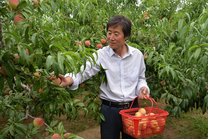 見到王文章時(shí),老王正帶著客商在桃園里看桃子。這幾天,桃子陸續(xù)成熟,老王除了做好桃子采摘前的各項(xiàng)準(zhǔn)備,還要招呼陸續(xù)前來的客商,期間,還不時(shí)有老客戶打來電話,詢價(jià)議價(jià)下訂單。