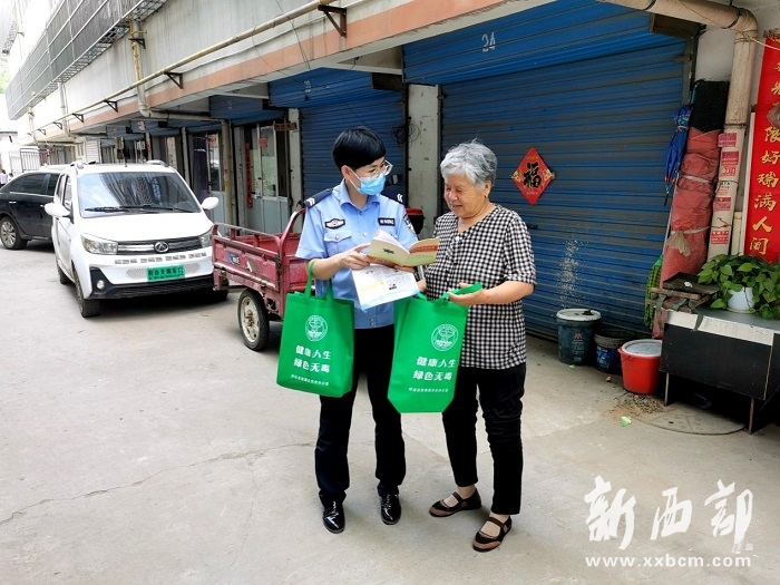活動中,工作人員為小區(qū)的居民發(fā)放禁毒宣傳單,禁毒教育手冊、宣傳折頁等,并向他們講解毒品的種類、吸食毒品的危害以及如何預防毒品侵害等知識。同時提醒廣大群眾在日常生活中要提高防范意識,謹慎交友,學會保護自己、家人和朋友,堅決做到不碰毒、不沾毒,并鼓勵群眾發(fā)現(xiàn)涉毒違法行為要及時舉報。