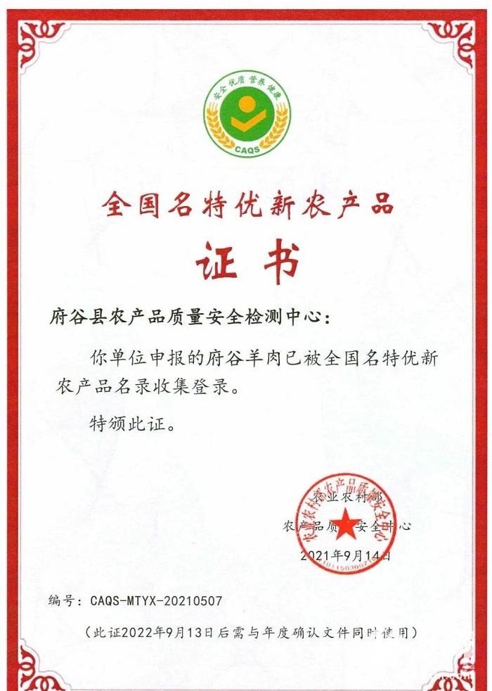 農(nóng)業(yè)農(nóng)村部公示了2021年全國第二批名特優(yōu)新農(nóng)產(chǎn)品名錄,府谷羊肉榮列其中,標(biāo)志著府谷縣羊肉品牌建設(shè)邁上了更新臺(tái)階,羊產(chǎn)業(yè)發(fā)展邁入了更高發(fā)展階段。?