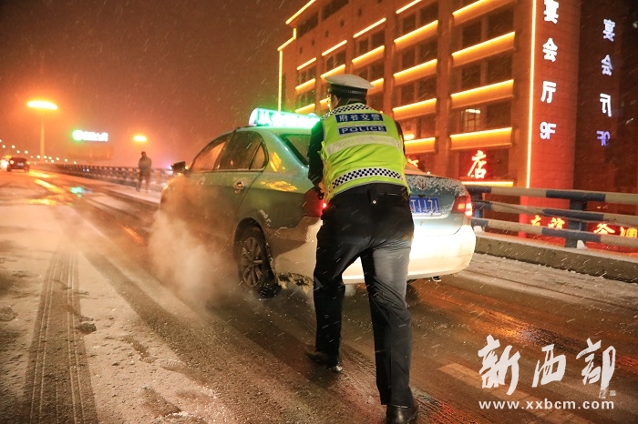 11月7日上午,府谷城區(qū)全體交警出動,提醒司機減速慢行,在城區(qū)易滑路段進行交通疏導(dǎo),在路面撒上融雪劑,幫助打滑車輛安全前行,各鎮(zhèn)交警中隊對轄區(qū)道路進行巡邏預(yù)判,對高危道路進行臨時封閉,擺放提醒牌,進一步減少道路交通事故發(fā)生。