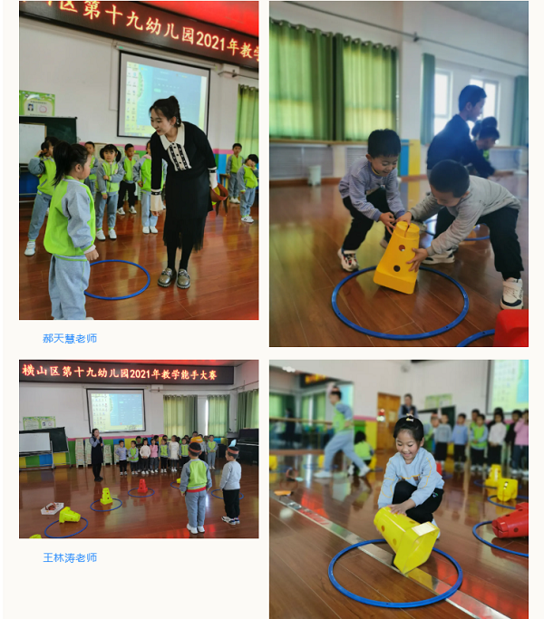 本次比賽教師根據(jù)自己的教學(xué)經(jīng)驗(yàn)、知識(shí)背景、情感體驗(yàn)及對(duì)教材的不同理解、策略的不同選擇,塑造出各具特色的創(chuàng)造性集體教學(xué)模式。每位教師以飽滿的精神狀態(tài),盡情展現(xiàn)自己的專業(yè)能力,將教學(xué)與游戲相融合,呈現(xiàn)了獨(dú)具特色的教育實(shí)踐活動(dòng)。