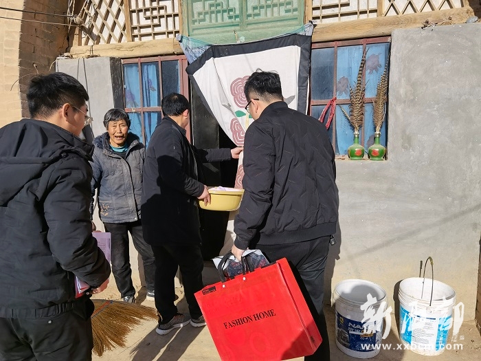 新西部網(wǎng)訊(通訊員 陳姣姣)12月15日,榆林市橫山區(qū)石窯溝辦事處常家元村駐村工作隊干部辛小東一行與村支部書記張清國共同將橫山區(qū)民政局派發(fā)給該村脫貧重點監(jiān)測戶的“暖冬大禮包”挨家逐戶送到鄉(xiāng)親們的手中,給他們送上入冬以來最溫暖的慰問。