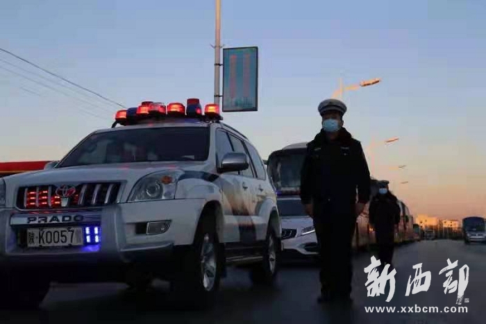 (警車帶領(lǐng) 接返大學生回家的大巴車隊回來了)