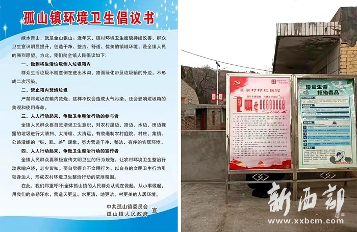 強(qiáng)化宣傳,深植綠色環(huán)保意識(shí)。鎮(zhèn)村干部通過召開會(huì)議、走訪入戶、親力親為等多方式深入群眾內(nèi)部,發(fā)放《孤山鎮(zhèn)環(huán)境衛(wèi)生倡議書》,宣傳“綠水青山就是金山銀山”的理念,在鎮(zhèn)內(nèi)顯著位置擺放村規(guī)民約,倡導(dǎo)全民行動(dòng),自覺對(duì)房前屋后、背街小巷發(fā)現(xiàn)的垃圾及時(shí)進(jìn)行清理。