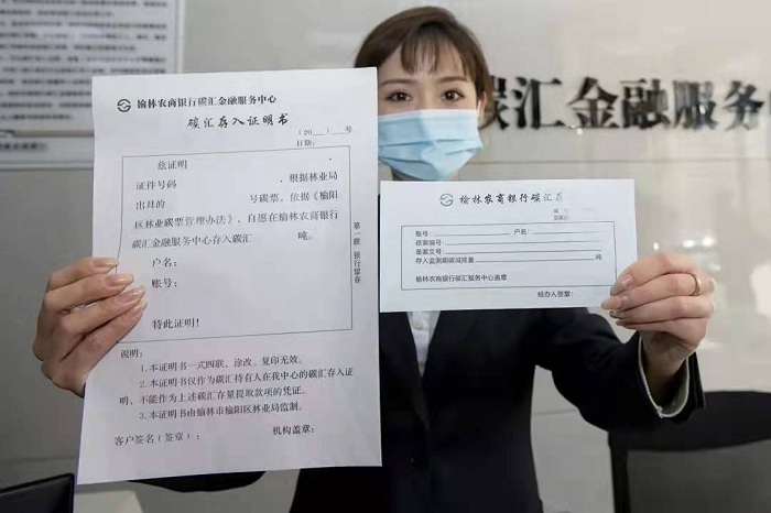 “我行碳匯金融服務中心設立專門的業(yè)務服務窗口,開辟碳匯業(yè)務綠色通道,提供碳匯結(jié)算賬戶服務和管理、碳匯政策解讀和宣傳、碳票倉單的保管和管理以及碳匯相關業(yè)務的服務,為企業(yè)、碳票持有者提供綜合性的碳票金融服務?!庇芰洲r(nóng)商銀行碳匯金融服務中心工作人員高嘉勵說。