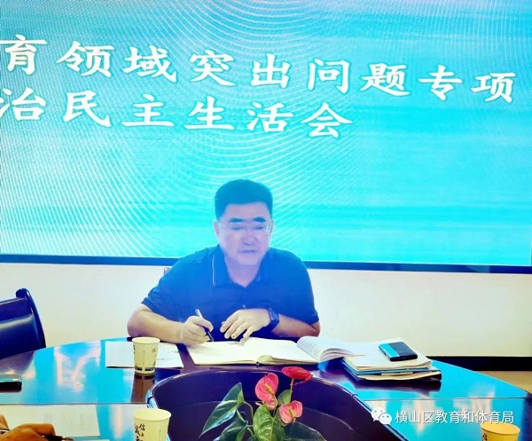 7月9日上午,橫山區(qū)教體局教育領(lǐng)域突出問題專項整治民主生活會在局機關(guān)三樓會議室召開,區(qū)紀委監(jiān)委派駐區(qū)教體局紀檢監(jiān)察組組長陳永崗參會指導,區(qū)教體局全體領(lǐng)導班子參加會議,會議由區(qū)教體局黨組書記、局長李云主持。