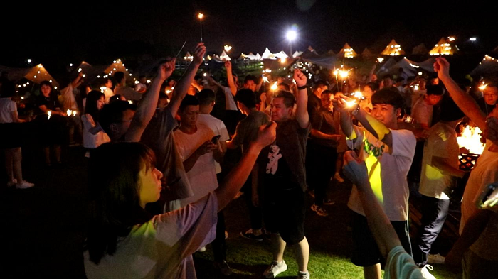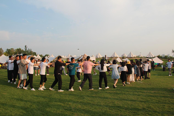 活動現(xiàn)場,彰顯個性的緣分簽名墻、豐富精致的甜點美食、裝扮溫馨的草地天幕、好玩有趣的游戲互動、夕陽下的柔情薩克斯演奏、嘉賓即興情歌助唱、夜幕下的篝火晚會、歡樂放飛轟趴……為青年職工聯(lián)誼活動增添了甜美浪漫快樂的情意。