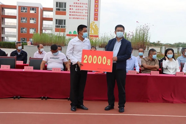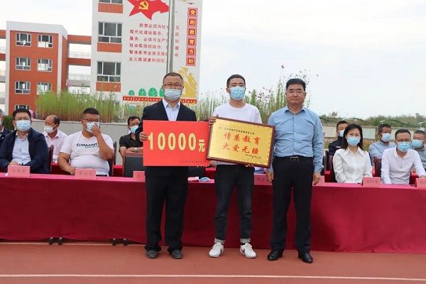 活動(dòng)中,橫山區(qū)產(chǎn)業(yè)園區(qū)管理委員會(huì)、白界鎮(zhèn)政府分別給學(xué)校捐款兩萬元,橫山元馳置地有限公司給學(xué)校捐款三萬元,橫山縣龍盟偉業(yè)房地產(chǎn)開發(fā)有限責(zé)任公司、陜西隆冠實(shí)業(yè)有限公司、榆林市正林房地產(chǎn)開發(fā)有限責(zé)任公司、忠和房地產(chǎn)開發(fā)有限責(zé)任公司、新開溝村委會(huì)分別給學(xué)校捐款一萬元,白界村委會(huì)給學(xué)校捐款八千元,孫家灣村委會(huì)給學(xué)校捐款五千元。