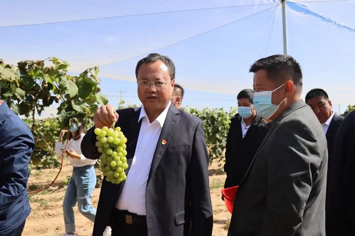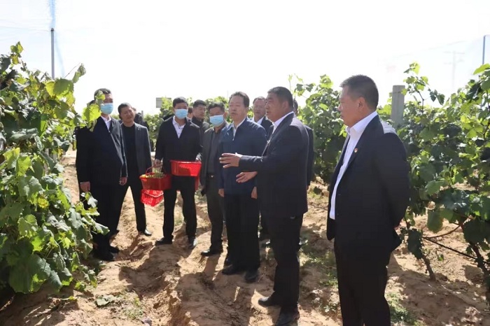 據(jù)了解,近年來麻黃梁鎮(zhèn)圍繞鄉(xiāng)村振興戰(zhàn)略,緊跟全域旅游創(chuàng)建步伐,結(jié)合全區(qū)“4+2+X”現(xiàn)代農(nóng)業(yè)產(chǎn)業(yè)體系布局,提出“1234”總體發(fā)展思路,以設(shè)施農(nóng)業(yè)和文化旅游為抓手,結(jié)合該鎮(zhèn)地域優(yōu)勢(shì)和神奇麻黃梁的美譽(yù),深入挖掘沙地葡萄文化內(nèi)涵,打造千畝葡萄示范基地。在品種選擇上,以市場(chǎng)高度認(rèn)可的陽(yáng)光玫瑰、夏黑、藍(lán)寶石等優(yōu)良品種為主。在政策獎(jiǎng)補(bǔ)上,以鄉(xiāng)村振興示范村建設(shè)為抓手,累計(jì)兌現(xiàn)各類獎(jiǎng)補(bǔ)資金達(dá)600余萬元。在規(guī)模種植上,采取“黨支部+股份經(jīng)濟(jì)合作社+種植專業(yè)合作社+農(nóng)戶”的模式,走出了一條黨建引領(lǐng)鄉(xiāng)村振興的富民之路。今年預(yù)計(jì)葡萄每畝產(chǎn)量1500斤,收益35000元以上,全年預(yù)計(jì)總產(chǎn)值突破3500萬元。