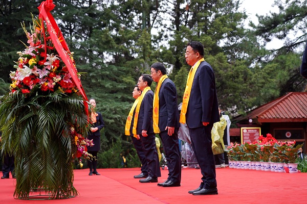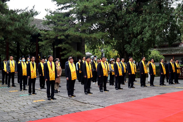 全體參祭人員向軒轅黃帝像行三鞠躬禮,表達(dá)對先祖的追思與敬仰。