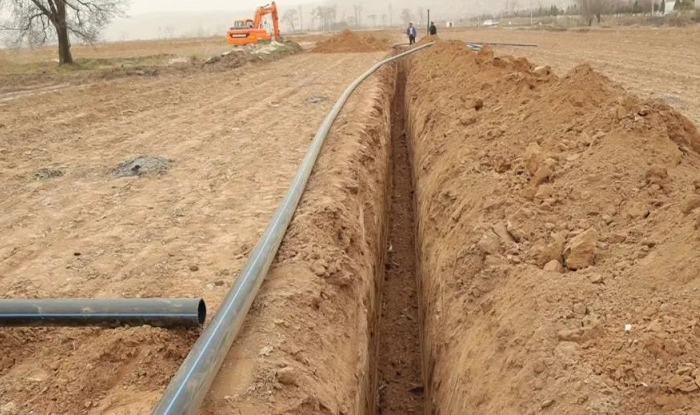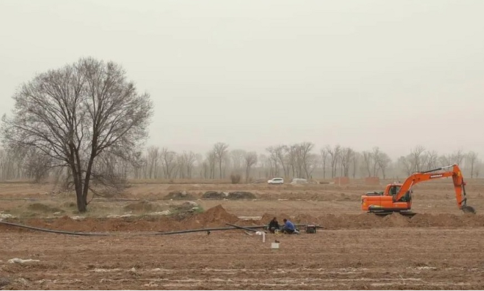這兩天,在墻頭農業(yè)園區(qū)墻頭村的大田里,十余名工人師傅正在量尺寸,把一截截滴灌水管鋪到開挖好的管道里。大家搶時間,抓進度,力爭在春耕前完成管網建設任務,讓村民盡早享受到高標準農田帶來的方便與實惠。