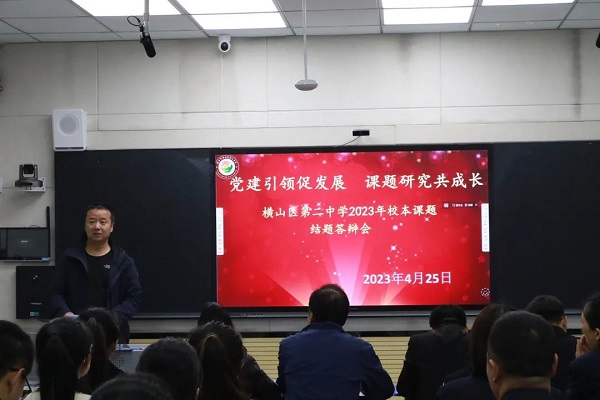 為加強(qiáng)黨建引領(lǐng)與課題研究深度融合,促進(jìn)我校教師專業(yè)發(fā)展,提高教師教科研能力與水平,4月26日,橫山區(qū)第二中學(xué)教研室開展了2023年校本課題結(jié)題答辯活動(dòng)。會(huì)議由學(xué)校教研室副主任張勇主持,校長(zhǎng)胡培斌、黨總支書記孫占權(quán)、教研室主任劉榮出席結(jié)題答辯會(huì)。