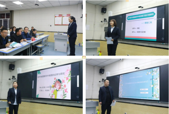 課題主持人針對(duì)評(píng)委的提問,進(jìn)行課題答辯。評(píng)委們對(duì)每位答辯教師的課題進(jìn)行了點(diǎn)評(píng),肯定了課題選題新穎,研究規(guī)范,調(diào)查科學(xué),研究過程“生動(dòng)、豐富、真實(shí)、詳實(shí)”,體現(xiàn)了國(guó)家課程方案中的育人導(dǎo)向和素養(yǎng)導(dǎo)向,做到了黨建引領(lǐng)和教研深度融合。馮曉斌副主任指出,研究過程要注重邏輯性,聚焦核心素養(yǎng)問題,在研究中發(fā)現(xiàn)并總結(jié)規(guī)律,提煉研究成果,加大成果推廣力度。經(jīng)過現(xiàn)場(chǎng)答辯和材料查閱,評(píng)委會(huì)研究決定對(duì)楊婧主持的《關(guān)于提高初中生地理讀圖能力方法與技能的研究》等14項(xiàng)校本課題,準(zhǔn)予結(jié)題。胡培斌校長(zhǎng)代表學(xué)校向四位專家能在百忙中蒞臨我校,給予專業(yè)指導(dǎo)表示感謝。同時(shí),對(duì)評(píng)審專家認(rèn)真嚴(yán)謹(jǐn),公正負(fù)責(zé)的工作作風(fēng)表示敬意。胡校長(zhǎng)表示,專家們高屋建瓴的建議,為課題研究拓寬了研究思路,指明了課題研究的方向。同時(shí),胡校長(zhǎng)也鼓勵(lì)教師們要圍繞課堂,聚焦問題,尋求突破,將課題研究成果應(yīng)用到教學(xué)實(shí)踐中。
