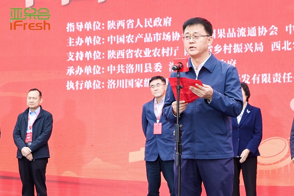 陜西省委常委、延安市委書記蒿慧杰宣布開展;原農(nóng)業(yè)部黨組成員、中國農(nóng)產(chǎn)品市場協(xié)會會長張玉香,洛川縣委書記張繼東出席開展式并致辭;延安市委副書記、市長嚴(yán)漢平主持開展式。