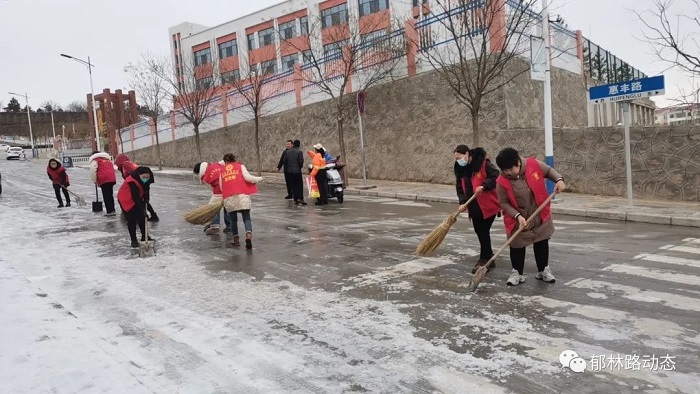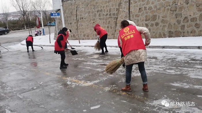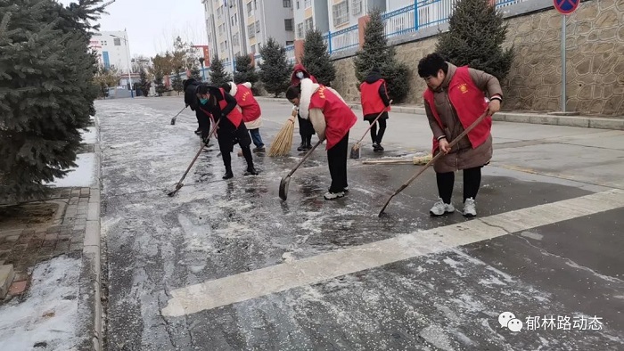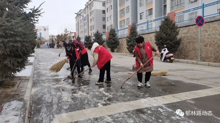 活動中,郁林路社區(qū)黨支部書記組織工作人員及志愿者開始分工行動,各方發(fā)力,有序地清除主要道路、背街小巷的積雪積冰,全力保障居民出行與道路安全。群眾也紛紛拿起掃帚、鐵鍬,主動加入掃雪隊伍。雖然室外溫度很低,路面積雪清理難度大,但大家勞動的熱情和團結(jié)的力量讓這個寒冷的日子變得格外溫暖。經(jīng)過幾個小時的奮戰(zhàn),轄區(qū)路段主干道、小區(qū)出入口等地的積雪全部鏟除,出行的居民紛紛點贊。