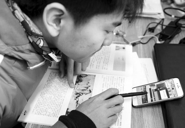 26中的語文老師用手機直播授課 本報記者沈繼軍攝