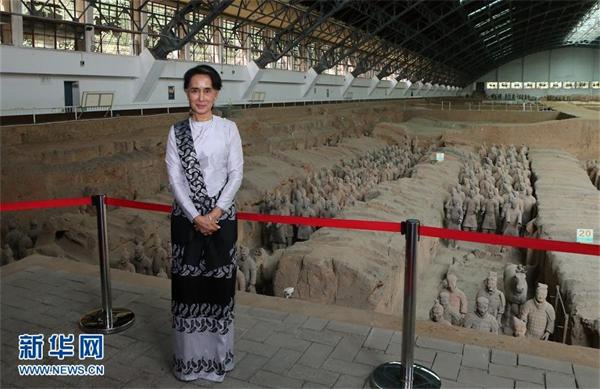 8月20日,正在中國進行正式訪問的緬甸國務(wù)資政昂山素季在西安秦始皇兵馬俑博物館參觀。 (來自:新華社)