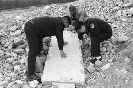 近日,鳳縣鳳州鎮(zhèn)群眾在嘉陵江支流安河采掘沙石時,一塊石碑露出砂石堆。鳳縣警方獲知這一消息后,出動警力,全力值守保護。并在縣文物管理人員配合下,將其安全運達存放地點。經文管人員初步鑒定,這座石碑為嘉靖十年(公元1531年),時任鳳縣知縣王庭璋奉旨所立,距今485年,具有重要文物價值。