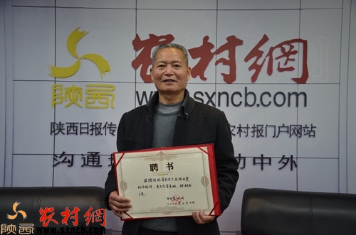 陜西農(nóng)村報(bào)副社長、陜西農(nóng)村網(wǎng)總編輯為張寶貴頒發(fā)青年記者導(dǎo)師證書