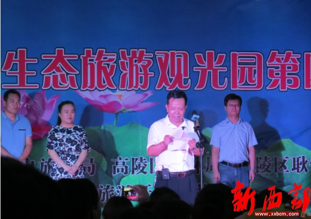 高陵區(qū)文體廣電旅游局副局長朱永賢對荷花節(jié)開幕表示祝賀!向各位嘉賓光臨表示歡迎和感謝!他說,近年來,在區(qū)委、區(qū)政府大力支持和高度重視下,轉(zhuǎn)變發(fā)展方式,調(diào)整產(chǎn)業(yè)結(jié)構(gòu),以招商引資、項(xiàng)目建設(shè)為抓手,以各項(xiàng)文旅活動為載體,大力發(fā)展文化旅游產(chǎn)業(yè),取得了明顯成效,高陵區(qū)旅游知名度、美譽(yù)度、影響力和吸引力明顯提升。 特別是今年以來,“西安年·最中國”、“春滿中國·醉西安”春季游、“夏爽中國·嗨西安”夏季游系列活動的開展,更是把高陵旅游知名度推向了高潮。
